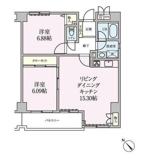 | 間取り詳細 | LDK:15.3畳 洋室:6.9畳、6.1畳 |