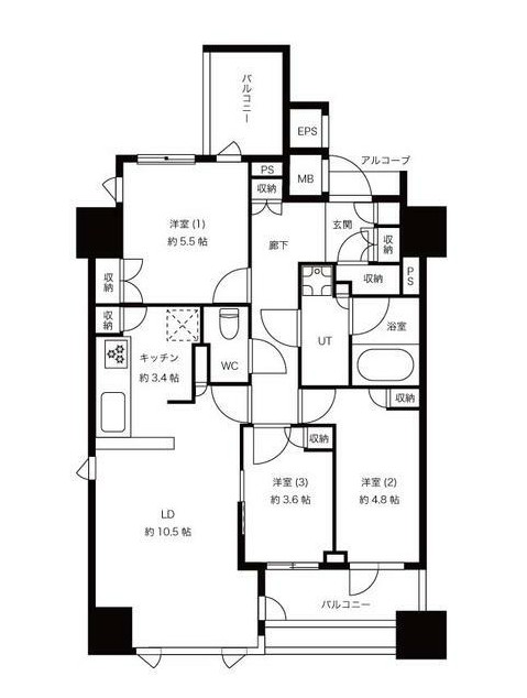 | 間取り詳細 | LDK:13.9畳 洋室:5.5畳、4.8畳、3.6畳 |