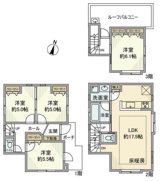 | 間取り詳細 | LDK:17.5畳 洋室:6.1畳、5.5畳、5畳、5畳 |