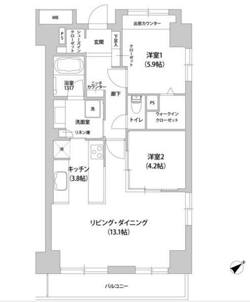 | 間取り詳細 | LDK:16.9畳 洋室:5.9畳、4.2畳 |