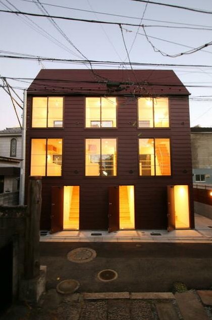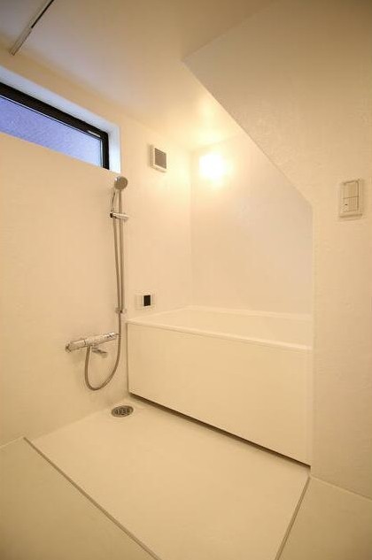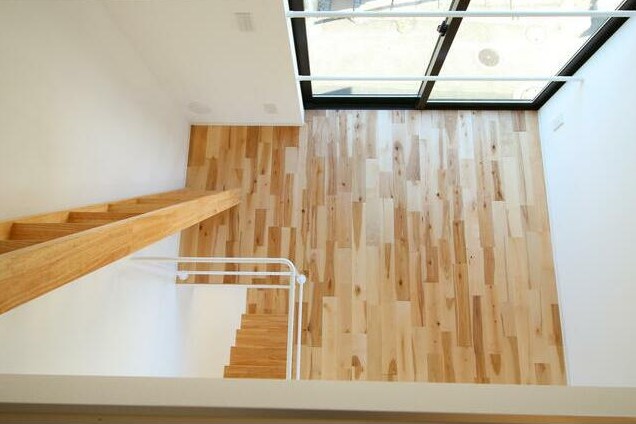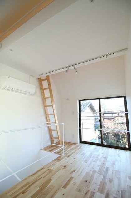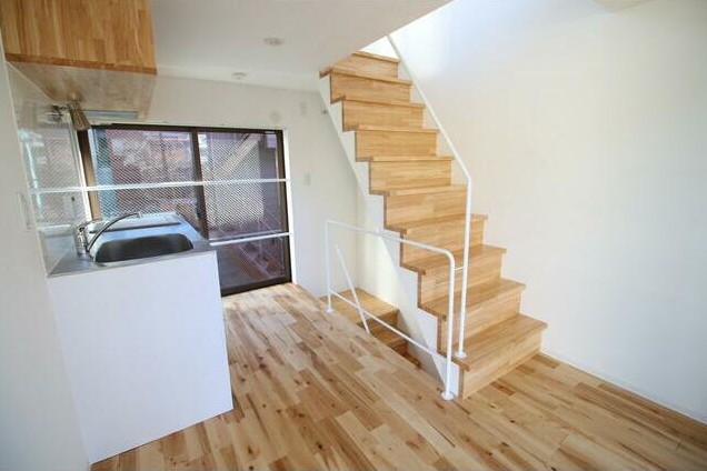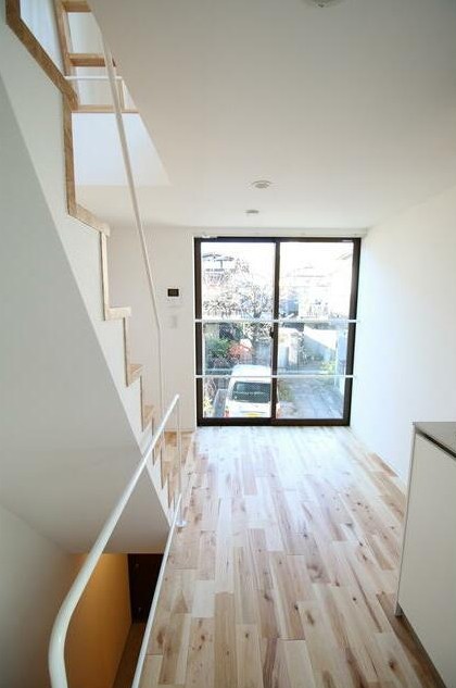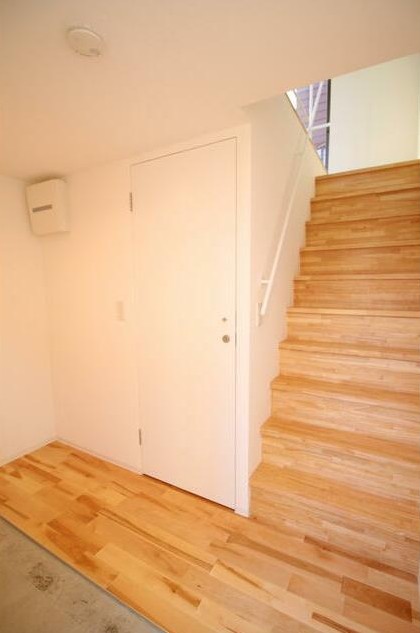 三方角部屋、自転車が停められる土間やロフトがある1階から3階のメゾネットタイプ。2016年築のデザイナーズアパートは温かみのある無垢材を使用、追い炊きやIHシステムキッチン、独立洗面台等の設備も充実