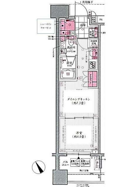 | 間取り詳細 | DK:7.3畳 洋室:4.8畳 |
