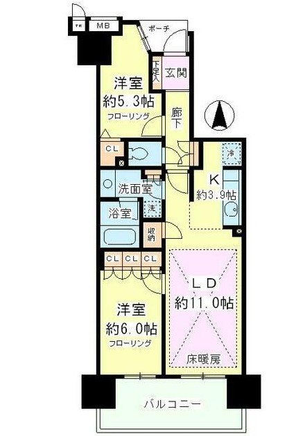 | 間取り詳細 | LDK:14.9畳 洋室:6畳、5.3畳 |