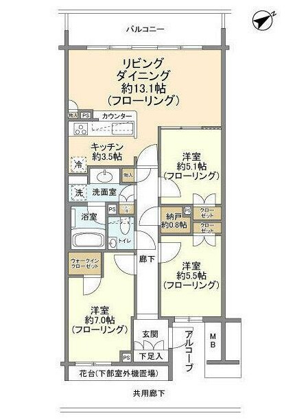 | 間取り詳細 | LDK:16.6畳 洋室:7畳、5.5畳、5.1畳 |