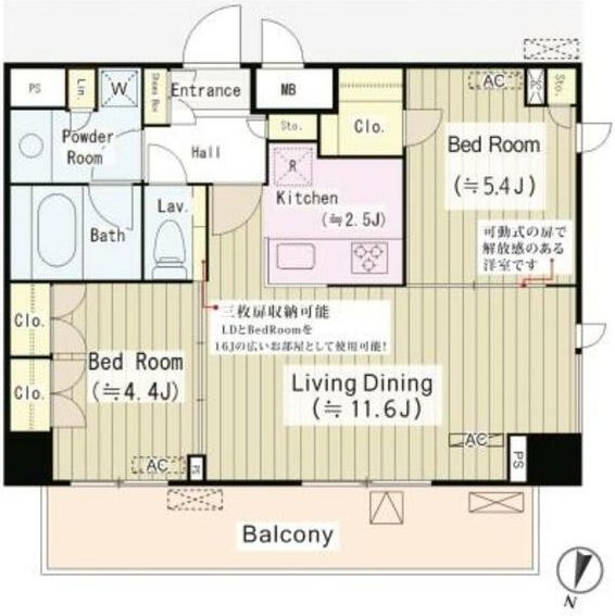 | 間取り詳細 | LDK:14.1畳 洋室:5.4畳、4.4畳 |
