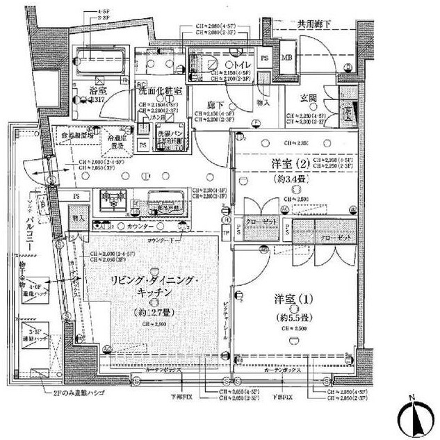 | 間取り詳細 | LDK:12.7畳 洋室:5.5畳、3.4畳 |