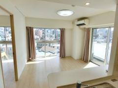 6階部分、南向き、二面採光の風通しに優れた2LDKはリビングに床暖房が入り、グリル付3口カウンターキッチンや追い炊き、浴室乾燥機、三面鏡付独立洗面台、シャワートイレ、エアコン等の設備が充実してます。