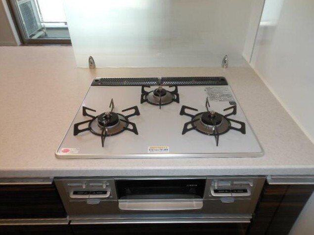 南東向き、最上階、角部屋、二面採光の風通しに優れた2LDKはリビングの床暖房やグリル付3口カウンターキッチン、追い炊きオートバス、浴室乾燥機、三面鏡付洗髪洗面化粧台、セコムセキュリティ等の設備が充実