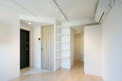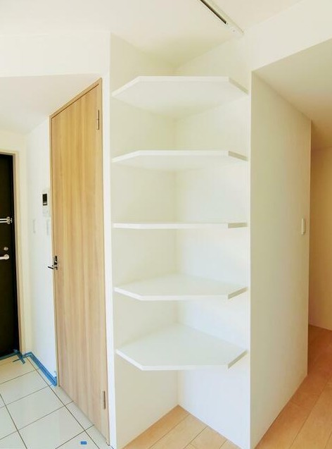 角部屋、三面採光の風通しに優れた室内は独立洗面台や浴室乾燥機、2口ガスのシステムキッチン、温水洗浄便座等の設備が充実。スポットライト照明がお洒落に照らす室内は玄関横の棚等の収納スペースも豊富です。