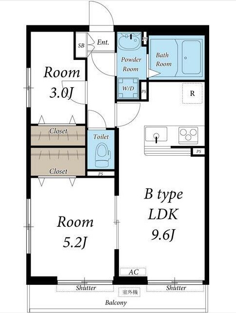 | 間取り詳細 | LDK:9.6畳 洋室:5.2畳、3畳 |