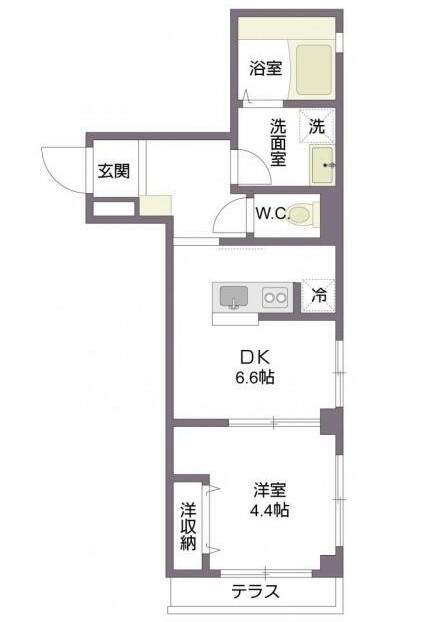 | 間取り詳細 | DK:6.6畳 洋室:4.4畳 |