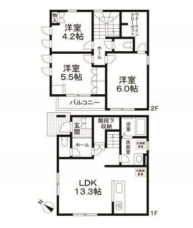 | 間取り詳細 | LDK:13.3畳 洋室:6畳、5畳、4.2畳 |