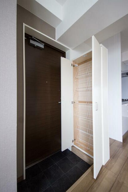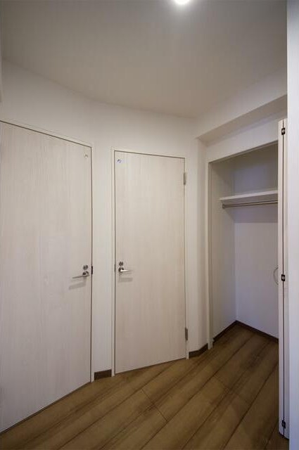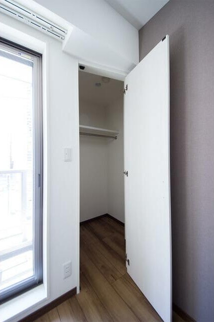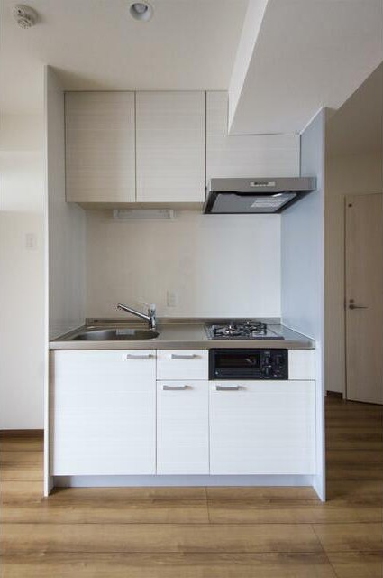 1フロア1世帯、複数面採光の風通しに優れた1LDKはクローゼットが3か所あり収納豊富。インターネット利用料不要の室内はグリル付システムキッチンやシャンプードレッサー、浴室乾燥機、エアコン2基と充実設備