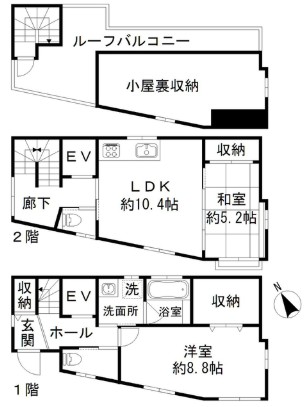 | 間取り詳細 | LDK:10.4畳 洋室:8.8畳 和室:5.2畳 |