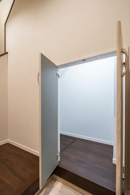 南向きの2LDKはグリル付きの3口カウンターキッチンや追い炊き、浴室乾燥機付きのお風呂、洗髪洗面化粧台、温水洗浄便座等の水回りの設備に優れ、階段下収納等の収納も豊富な2019年築のマンション。