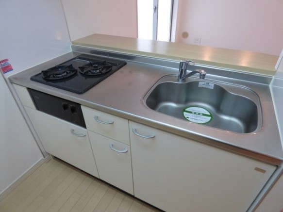 南向き、角部屋、二面採光の風通しに優れた室内は2口ガスのカウンターキッチンや独立洗面台、浴室換気乾燥機、温水洗浄便座、モニターフォン、エアコン等の設備が充実。ウォークインクローゼットがあり収納も豊富。