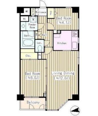| 間取り詳細 | LDK:12畳 洋室:6畳、4.1畳 |