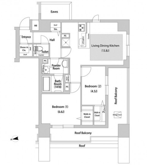 | 間取り詳細 | LDK:13.8畳 洋室:6.6畳、4.5畳 |