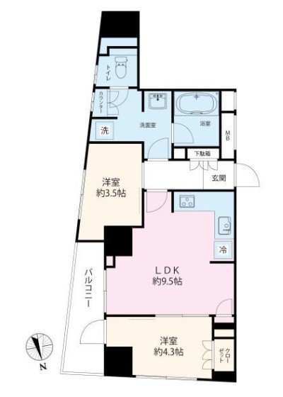 | 間取り詳細 | LDK:9.5畳 洋室:4.3畳 S:3.5畳 |