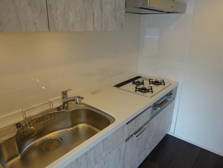 全室南西向きの2LDKはインターネット利用料が無料。浄水器やグリル付きの3口システムキッチンや追い炊き、浴室乾燥機付きのお風呂、三面鏡付洗髪洗面化粧台、温水洗浄便座、エアコン3基と設備が充実の分譲賃貸マンション