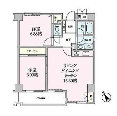 | 間取り詳細 | LDK:15.3畳 洋室:6.88畳、6.09畳 |
