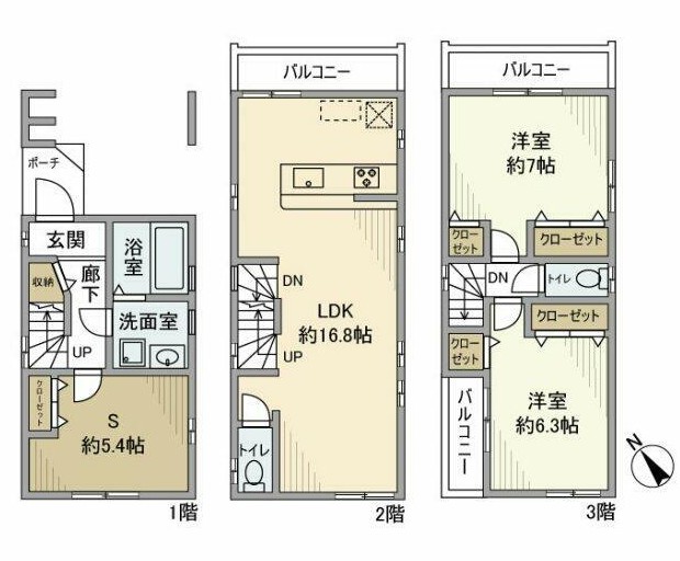 | 間取り詳細 | LDK:16.8畳 洋室:7畳、6.3畳、5.4畳 |