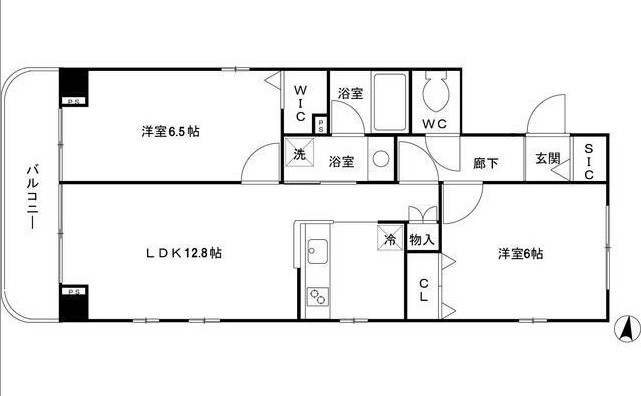 | 間取り詳細 | LDK:12.8畳 洋室:6畳、6.5畳 |