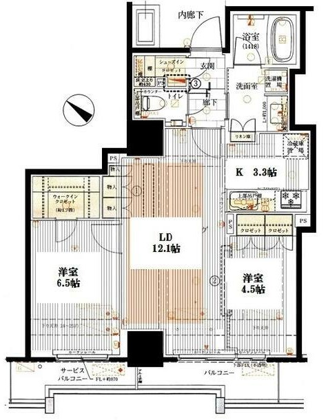 | 間取り詳細 | LDK:15.4畳 洋室:6.5畳、4.5畳 |