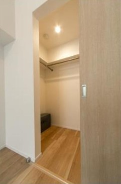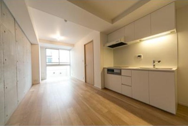 東向きの1LDKはウォークインクローゼットがあり収納豊富。グリル付きのIH3口システムキッチンや追い炊き、浴室乾燥機付きのお風呂、独立洗面化粧台、温水洗浄便座等の設備も充実したデザイナーズマンション。