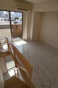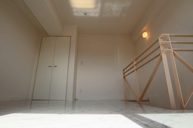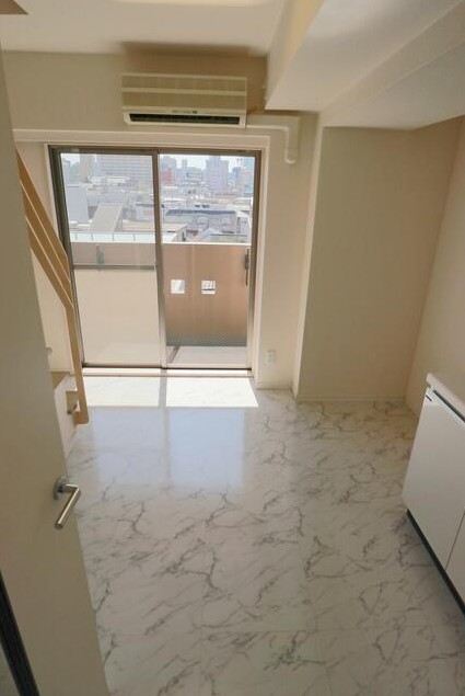 最上階、南向き、メゾネットタイプの1DKは追い炊きや浴室乾燥機付きのお風呂やシャンプードレッサー、グリル付き2口システムキッチン、エアコン2基と設備が充実。宅配ボックスやごみ置場等の共用部も充実の分譲賃貸マンション