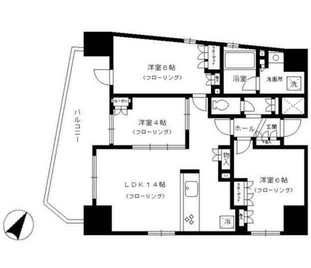 | 間取り詳細 | LDK:14畳 洋室:6畳、6畳、4畳 |