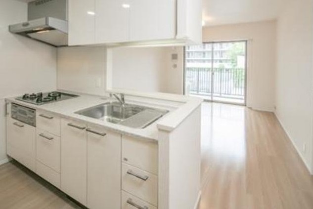 足元から温める床暖房がリビングに入り、グリル付きの3口カウンターキッチンや追い炊き、浴室乾燥機付きのお風呂、温水洗浄便座等の水回りの設備が充実した分譲賃貸。宅配ボックスやごみ置場等の共用設備も充実。