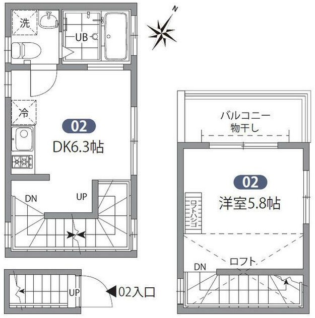 | 間取り詳細 | DK:6.3畳 洋室:5.8畳 |
