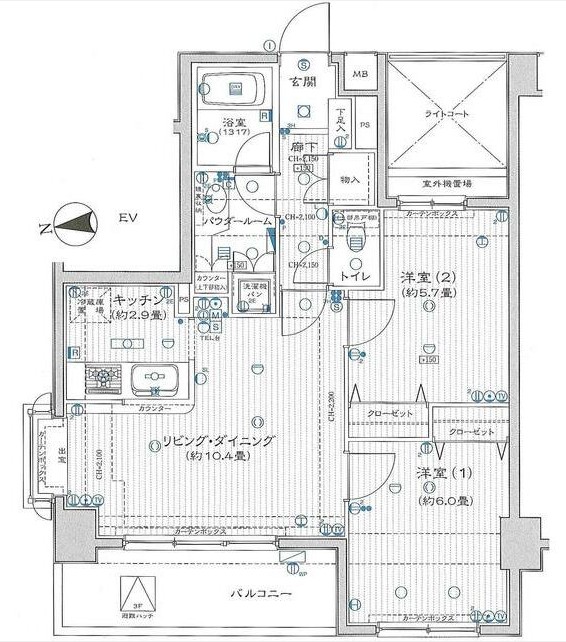 | 間取り詳細 | LDK:13.3畳 洋室:6畳、5.7畳 |