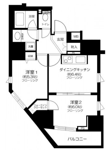 | 間取り詳細 | DK:6.4畳 洋室:6畳、5.3畳 |