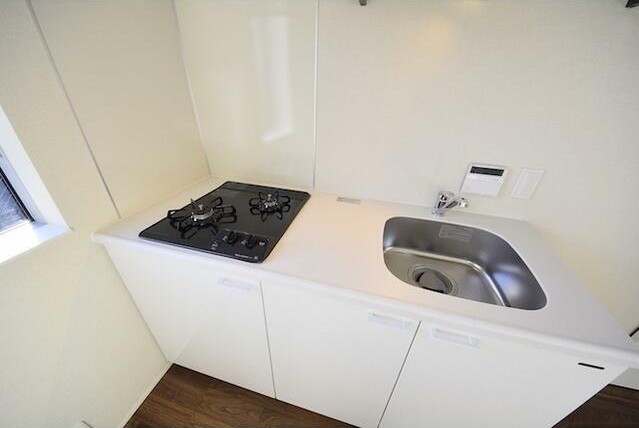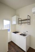 最上階、角部屋、二面採光の風通しに優れた室内はインターネット利用料が無料。追い炊きや浴室乾燥機付きのお風呂、2口ガスのシステムキッチン、デザイン性の高い独立洗面台、温水洗浄便座等の室内設備も充実の新築デザイナーズアパートメント