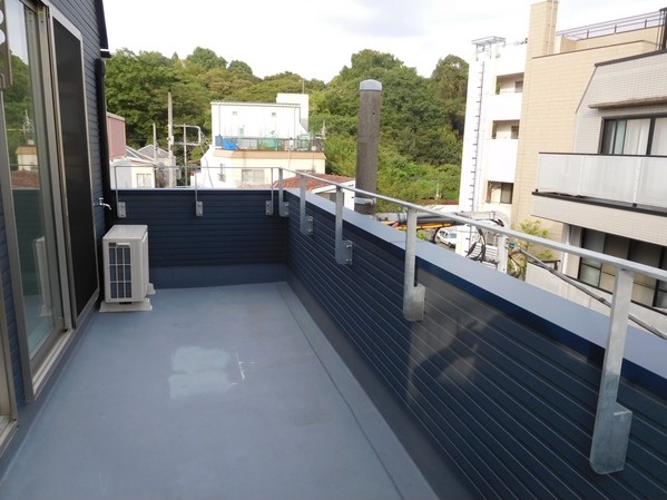 南東向きにルーフバルコニーがある、最上階、角部屋、複数面採光の1LDKは追い炊きや浴室乾燥機付きのお風呂や2口ガスのシステムキッチン、シャンプードレッサー、温水洗浄便座、ペアガラス等の設備が充実。