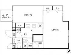 【礼金0ヶ月】最上階、角部屋、ルーフバルコニーが広がる1LDKはクローゼットが3か所あり収納が豊富。IHのシステムキッチンや浴室乾燥機、独立洗面化粧台、洗浄便座、エアコン2基と室内設備が充実してます。