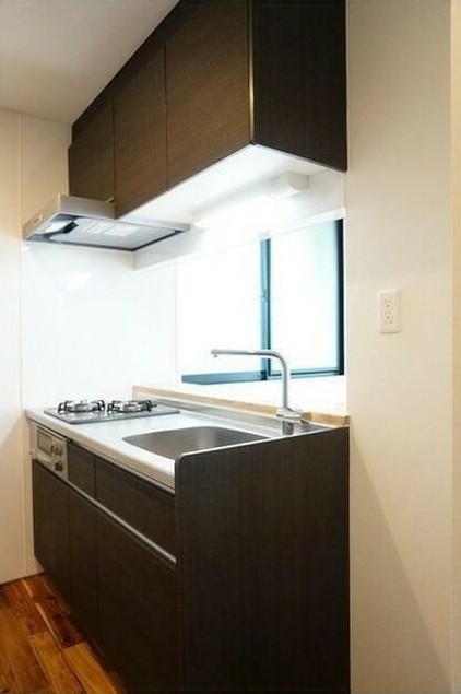 南向き、角部屋、二面採光の風通しに優れた室内はカウンターキッチンや追い炊き、浴室乾燥機付きのお風呂、独立洗面台、温水洗浄便座、エアコン等の設備が充実。無垢材使用の温かみのあるデザイナーズマンションです