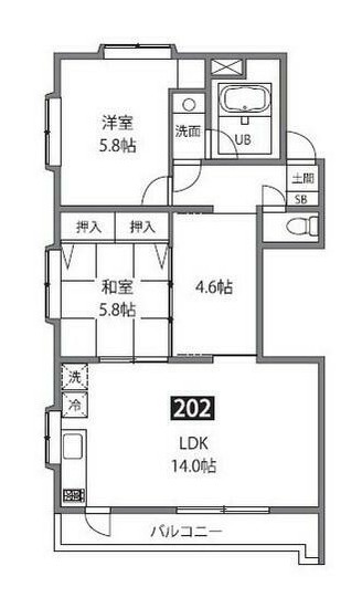 | 間取り詳細 | LDK:14畳 洋室:5.8畳 和室:5.8畳 |