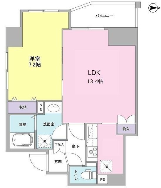 | 間取り詳細 | LDK:13.4畳 洋室:7.2畳 |