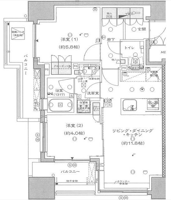 | 間取り詳細 | LDK:11.8畳 洋室:5.8畳、4畳 |