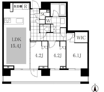 | 間取り詳細 | LDK:15.4畳 洋室:6.1畳、4.2畳、4.2畳 |