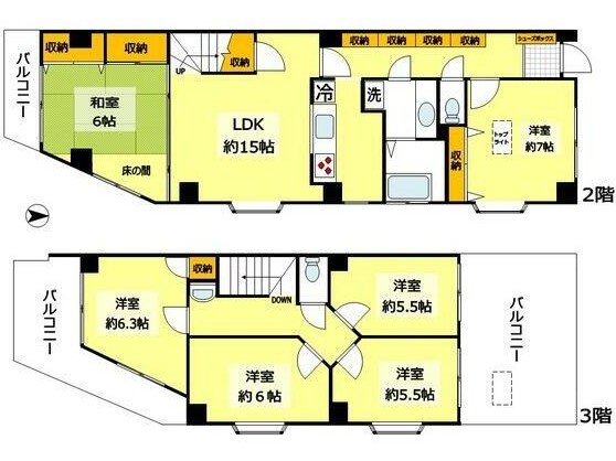 | 間取り詳細 | LDK:15畳 洋室:7畳、6.3畳、6畳、5.5畳、5.5畳 和室:6畳 |
