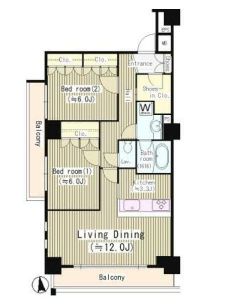 | 間取り詳細 | LDK:15.3畳 洋室:6畳、6畳 |