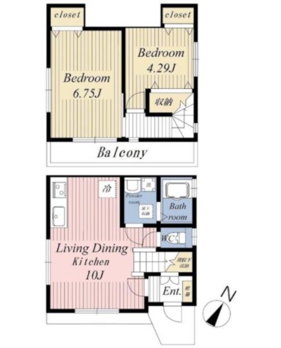 | 間取り詳細 | LDK:10畳 洋室:6.75畳、4.29畳 |