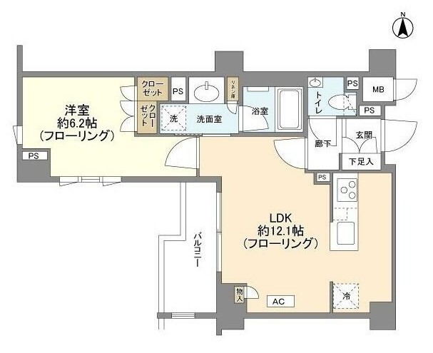 | 間取り詳細 | LDK:12.1畳 洋室:6.2畳 |
