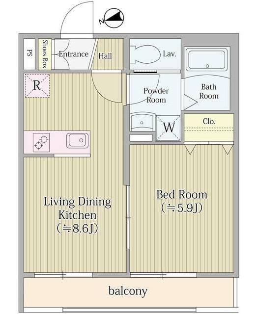 | 間取り詳細 | LDK:8.6畳 洋室:5.9畳 |