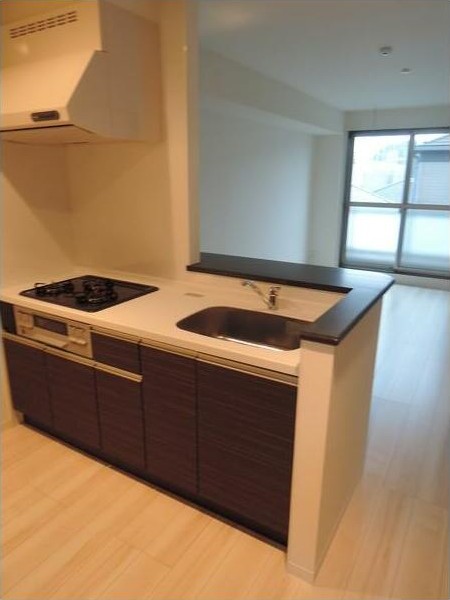 南向きの2LDKはグリル付きの3口カウンターキッチンや追い炊き、浴室乾燥機付きのお風呂、洗髪洗面化粧台、温水洗浄便座、エアコン3基等の室内設備に優れ、駐輪場、ゴミ置場、オートロック等の共用設備も充実