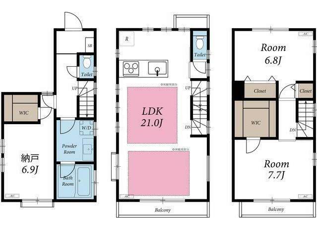 | 間取り詳細 | LDK:21畳 洋室:7.7畳、6.8畳 S:6.9畳 |